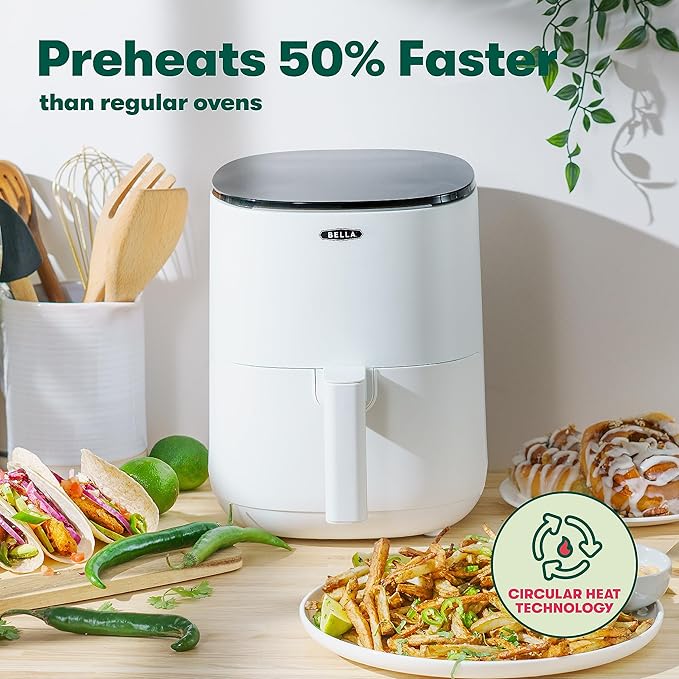 BELLA 3 Qt Touchscreen Air Fryer Oven and 5-in-1 Multicooker with Removable NonstickDishwasher Safe Crisping Tray and Basket, 1400 Watt Heating System, Matte Black