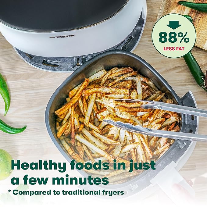 - INDULGE IN HEALTHY DELIGHTS: Enjoy guilt-free meals with 88% less fat and 65% fewer calories than typical fast food restaurants. The PFOA-free Nonstick basket and crisping tray are removable and dishwasher safe, making cleanup of the mini oven a breeze