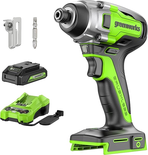 Greenworks 24V Brushless 1950 in./lbs Impact Driver, 1/4-inch Hex Variable Speed, Tool Only