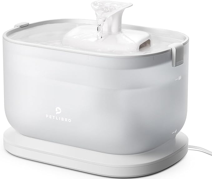 - Pet Companion That You Can Always Rely On – Made of superior ABS material, PETLIBRO water fountain is BPA-free and completely safe for cats. The 2.5L/84oz enlarged translucent cat fountain lets you easily gauge when it’s time to top-it up again.With 130ml emergency storage capacity and the safety snap lid to prevent accidental kicks, the cat waterer fountain can provide water even during power outage and take good care of your pets when you’re away.