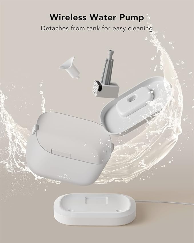 - Unprecedented Cat Fountain With Wireless Pump – Time to get rid of those tangled wires. The PETLIBRO cat water fountain with wireless pump makes it super easy to clean every corner without hassle. Also, thanks to the industry-leading design, Dockstream extends the life of the water pump, and with no wires immersed in water, you never have to worry about electric shock. NOTE: The water fountain is wall-powered. Only the water pump is wireless.