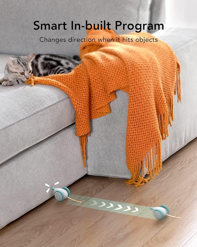 - Automatic Cat Toy: With an intelligent built-in obstacle avoidance sensor, PETLIBRO mouse cat toy runs in random directions and moves away when it hits a wall, furniture, or other obstacles, keeping your cat excited by remaining unpredictable.