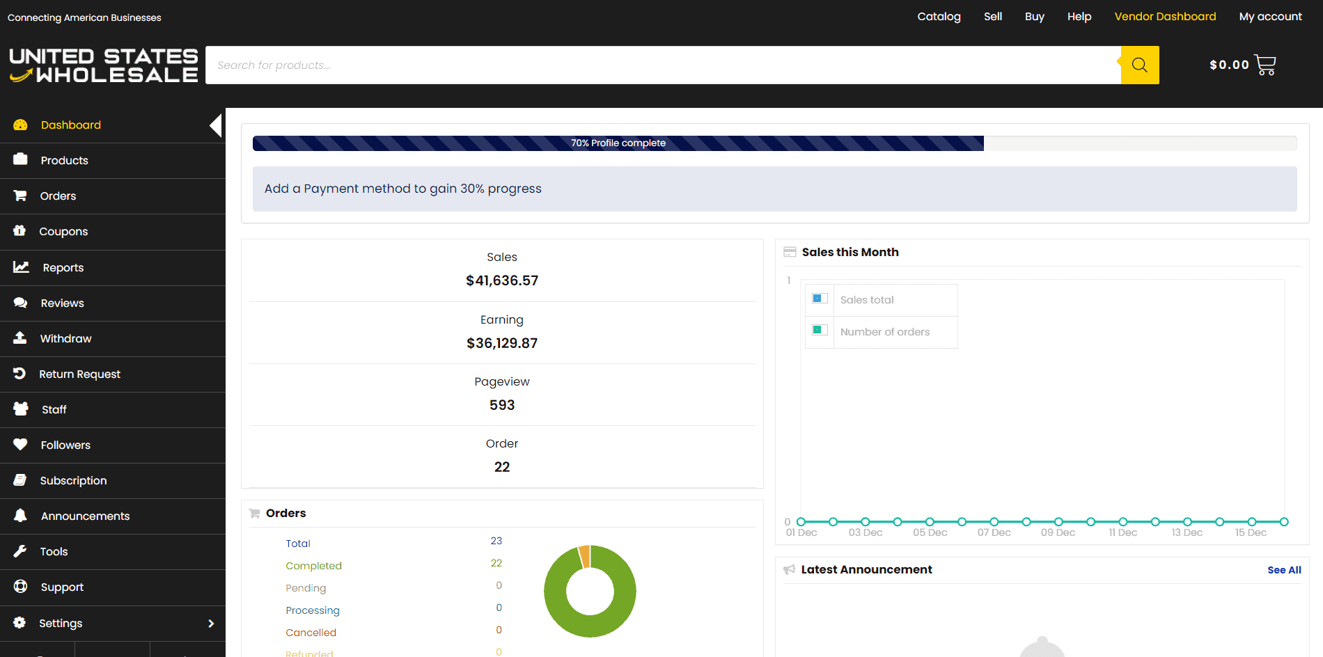 Sign up today and start selling your wholesale products right away. Our easy-to-use vendor dashboard will help you manage all your sales and shipping operations while we will focus on bringing more customers to your products and handle all the payment processing. We will be there to guide you every step of the way to become successful on our platform.